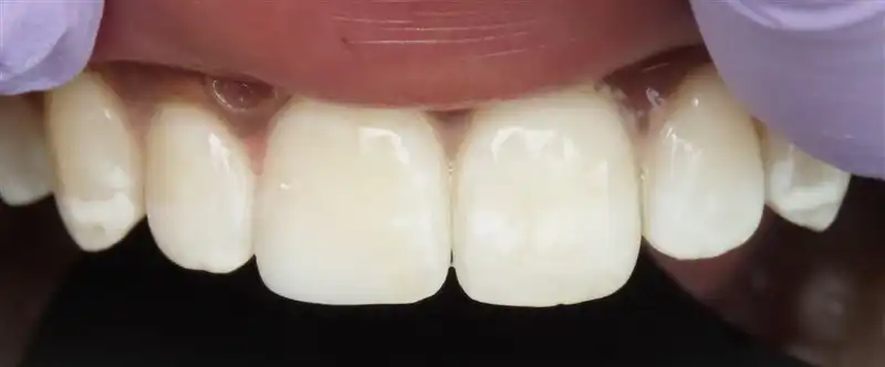 Explanation: Patient originally had composite bondings done to her 4 front teeth. Patient was unsatisfied with the looks and integrity of her teeth. 4 all ceramic veneers were used to transform her smile in to a much more natural and “flowing” smile.