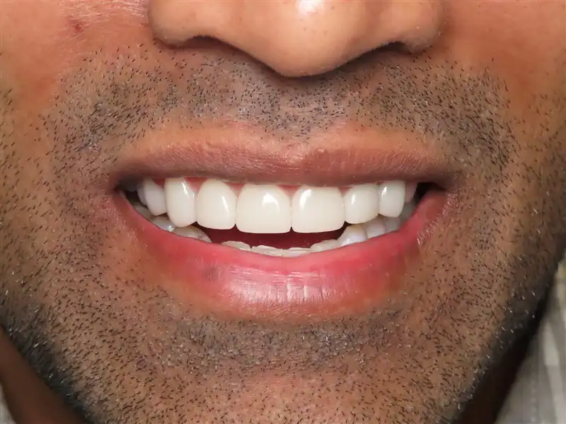 Explanation: Patient was tired of the appearance of his teeth with chipping and breakage. Smile was designed before treatment and accepted by patient first before placing veneers on upper and lower teeth. Patient recieved a natural smile that looks and feels great!